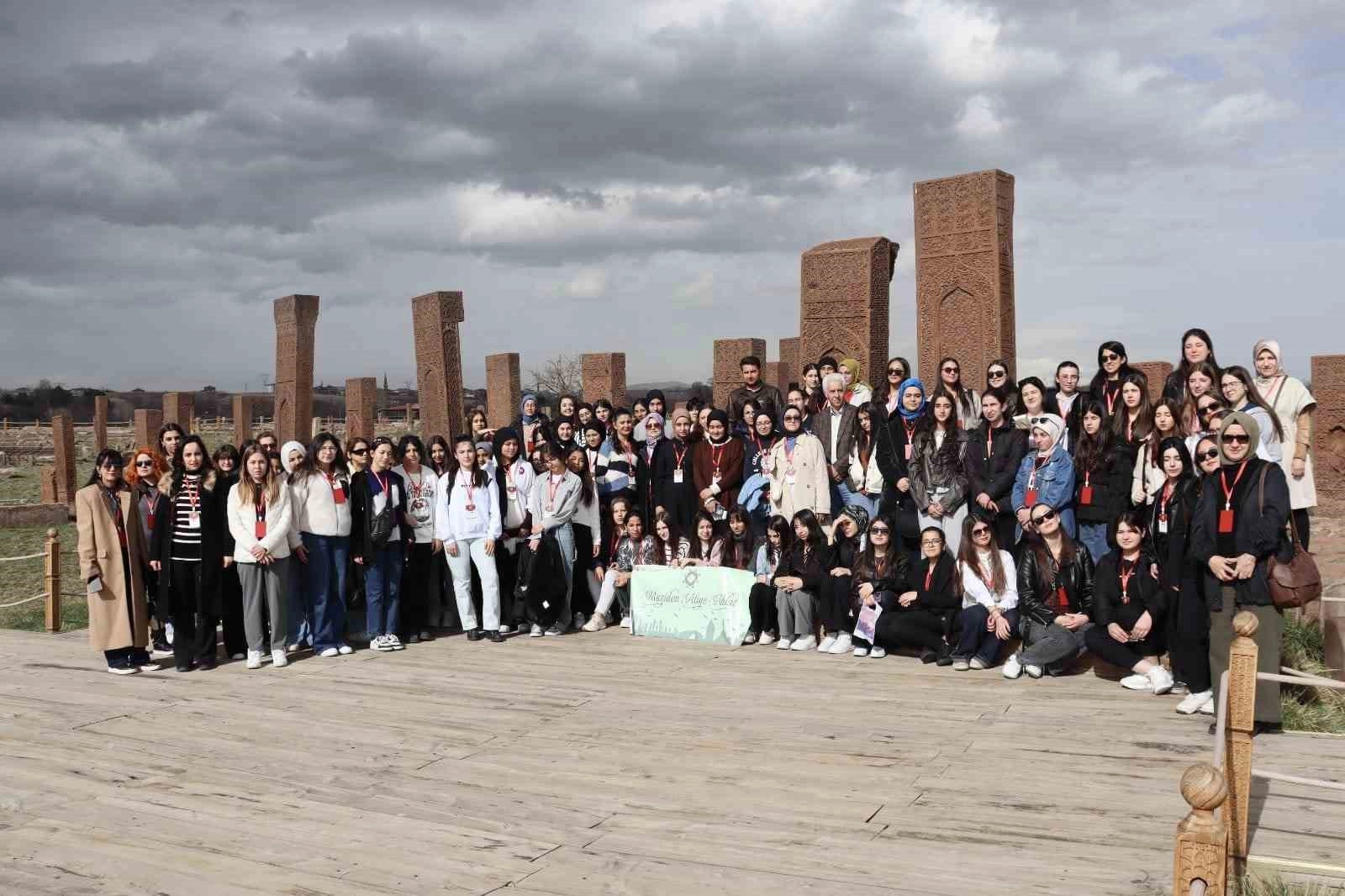 Öğrenciler, danışman öğretmen ve rehber eşliğinde Ahlat ilçesinde bulunan tarihi Selçuklu Meydan Mezarlığı, Mağara Evler, Harabeşehir, kümbetler, Abdurrahmangazi Türbesi ve Ahlat Müzesi'ni ziyaret etti.