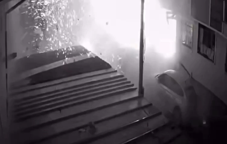 Binada ağır hasara sebep olan patlama anı, saniye saniye güvenlik kamerasına yansıdı. Görüntülerde, patlamanın şiddetiyle alevlerin yükseldiği görülüyor.