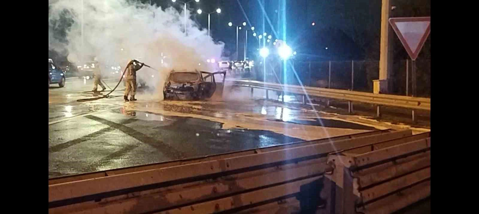 15 Temmuz Şehitler Köprüsü'nün Anadolu-Avrupa yönünde seyir halinde olan bir otomobil bir anda alev aldı. Kısa sürede büyüyerek bütün otomobili saran yangına itfaiye ekipleri müdahale etti.