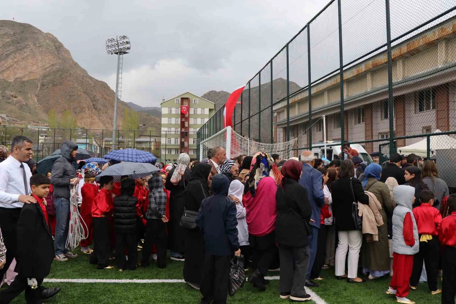 Erzurum'un Oltu ilçesindeki 23 Nisan Ulusal Egemenlik ve Çocuk Bayramı kutlamaları, yağmur engeline takıldı.