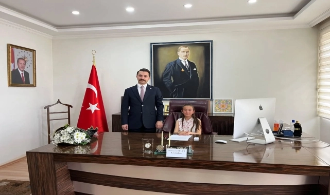 Göynücek Kaymakamı Osman Demirgül, makam koltuğunu temsili olarak Göynücek Atatürk İlkokulu öğrencilerinden Sümeyra Bulut'a devretti.