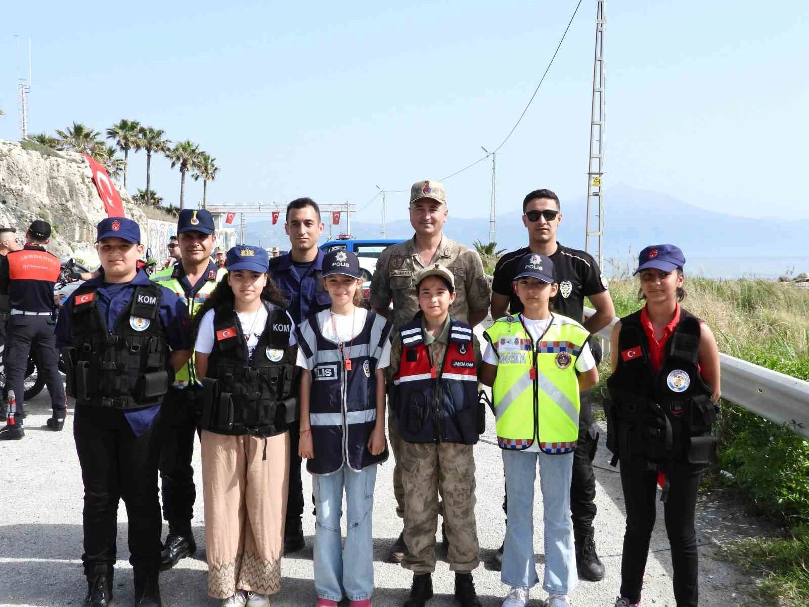 Hatay'ın Samandağ ilçesinde düzenlenen 23 Nisan Ulusal Egemenlik ve Çocuk Bayramı etkinlikleri kapsamında; çocuklar jandarma, polis ve sahil güvenlik üniformalarıyla denetime çıktı.