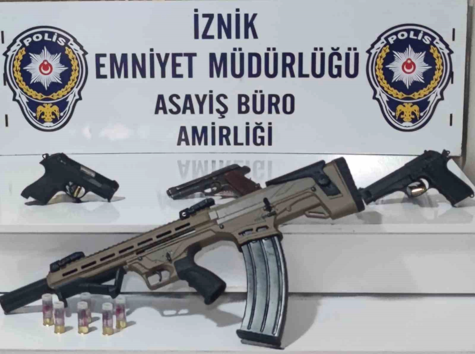 Bursa'nın İznik ilçesinde sokak ortasında otomatik silah ile havaya ateş eden 28 yıllık kesinleşmiş hapsi olan zanlı, saklandığı inşaatta kıskıvrak yakalandı. Bir başka olayda ise park halindeki otomobilden değerli eşyaları çalan hırsız ise tutuklandı.