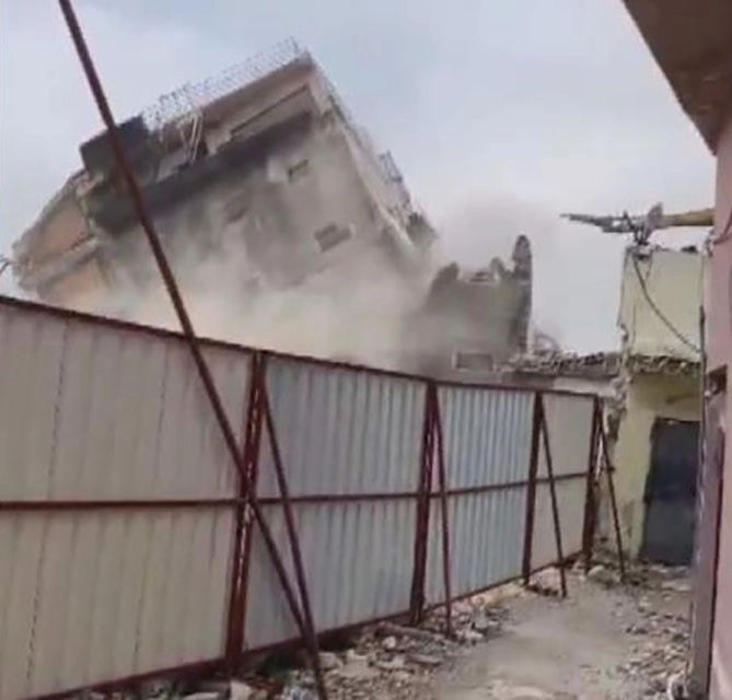 Kahramanmaraş merkezli depremlerde büyük yıkımın yaşandığı Hatay'da enkaz kaldırma çalışmalarında sona gelindi. Depremin vurduğu Antakya ilçesi Yeni Camii Mahallesi'nde 4 katlı bina, iş makinesinin darbesiyle kontrollü olarak yıkıldı. Otel binasının kontrollü olarak yıkıldığı anlar cep telefonu kamerasıyla saniye saniye görüntülendi.