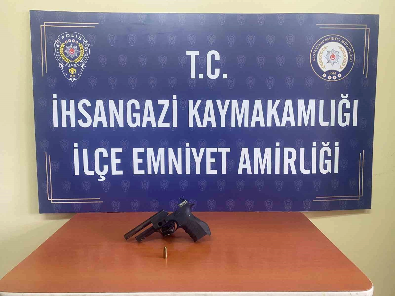 Edinilen bilgiye göre, İhsangazi İlçe Emniyet Amirliği ekiplerinin çalışması sonucu kesinleşmiş hapis cezası bulunan A.B. isimli hükümlü, İhsangazi ilçesinde bir ikamette olduğu tespit edildi. İkamette yapılan aramada şahıs yakalanırken 1 adet kapak kısmı olmayan ruhsatsız tabanca ile fişek ele geçirildi. Emniyetteki işlemlerin ardından adli makamlara sevk edilen hükümlü, tutuklanarak ceza infaz kurumuna teslim edildi.