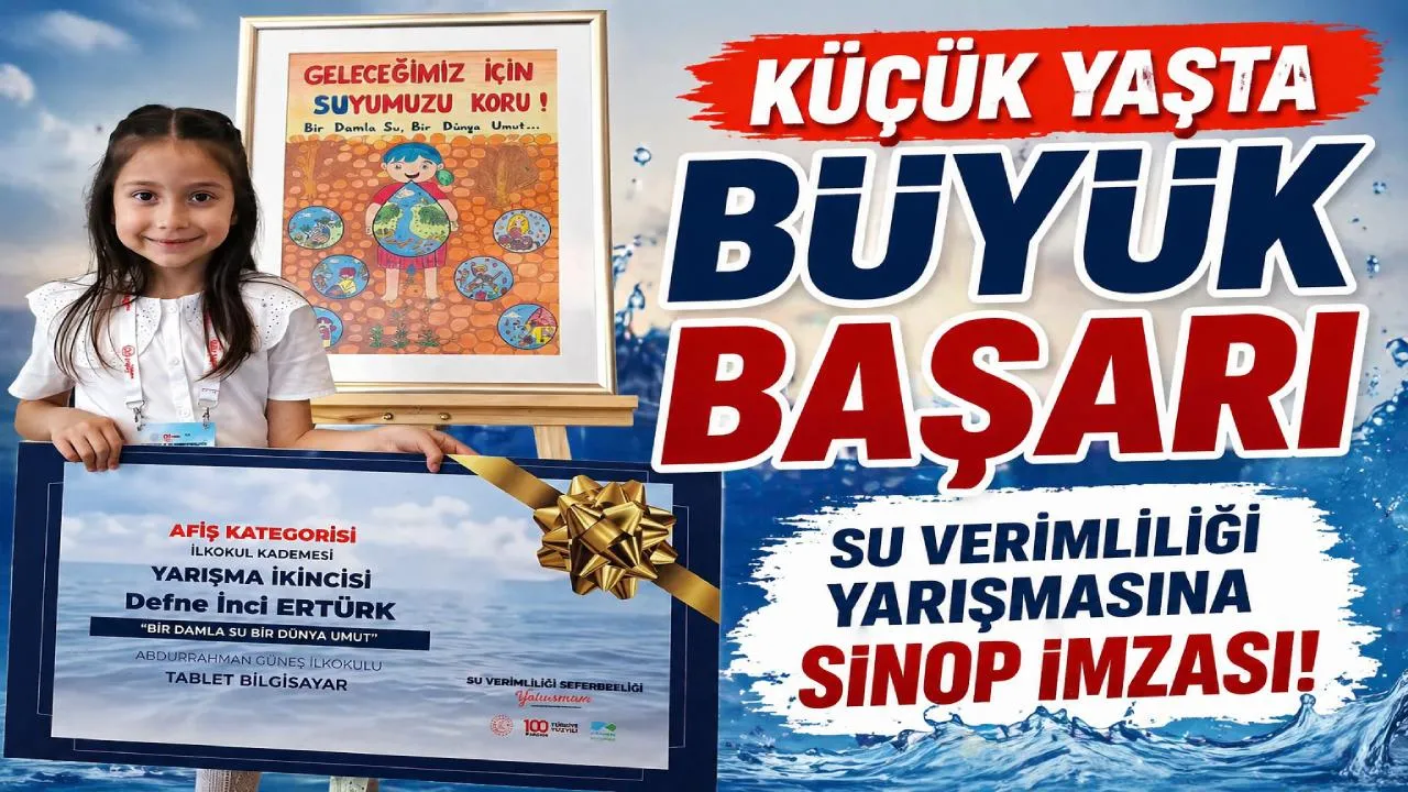 Millî Eğitim Bakanlığı ile Tarım ve Orman Bakanlığı iş birliğinde düzenlenen "Su Verimliliği Seferberliği Yarışması" sonuçlandı. 81 ilden on binlerce eserin katıldığı dev yarışmada Sinop’u temsil eden 1. sınıf öğrencisi Defne İnci Ertürk, afiş kategorisinde Türkiye ikincisi olarak büyük bir başarıya imza attı.