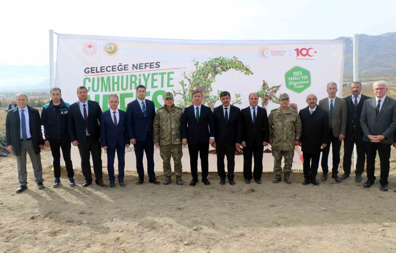 Cumhuriyetin 100. yılı etkinlikleri kapsamında bugün Erzincan'da 80 ilden gelen toprakla fidan dikimi etkinliği gerçekleştirildi.