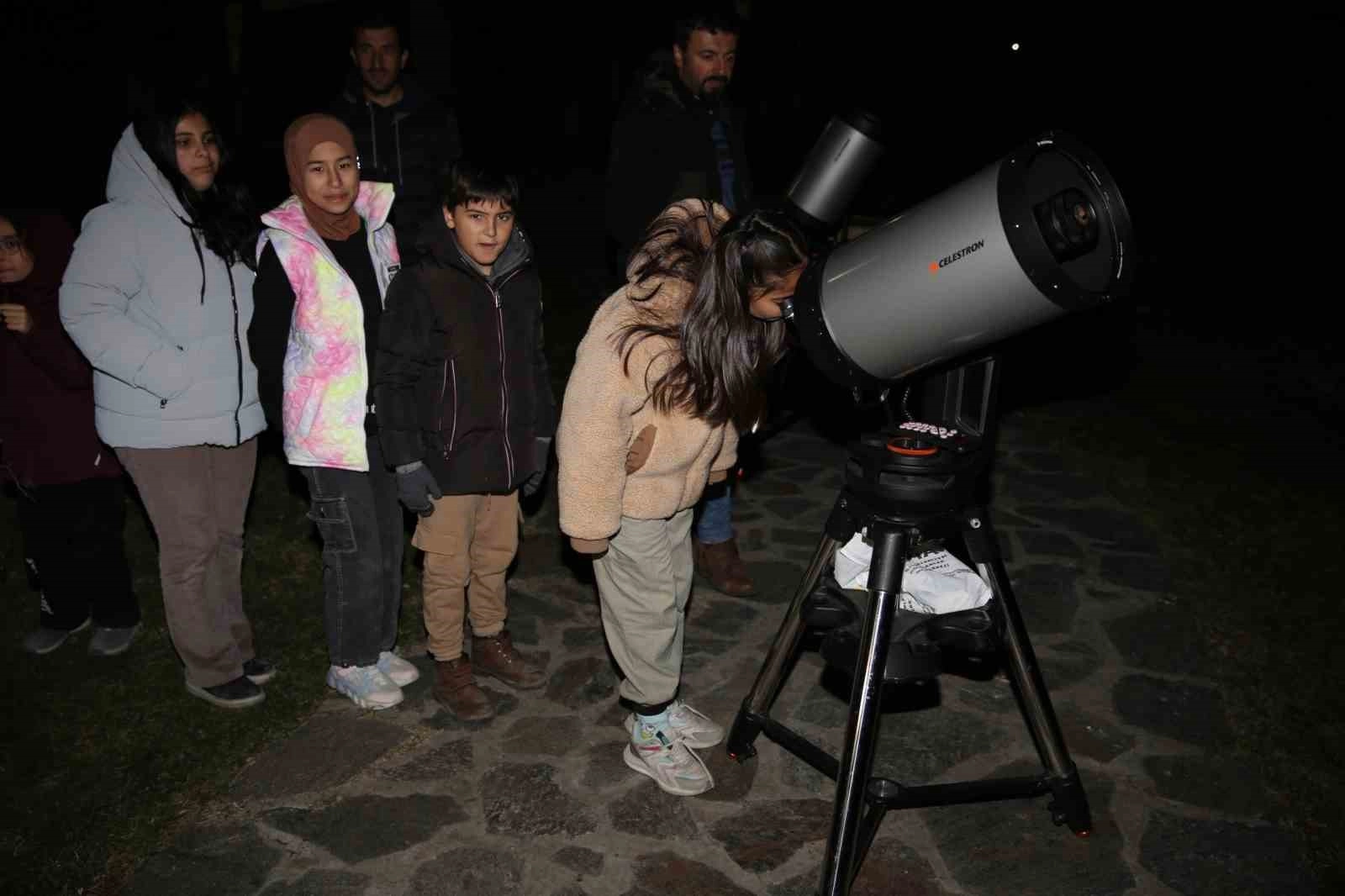 Bursa Büyükşehir Belediyesi tarafından gece ve gündüzün eşit olduğu 21 Mart'ta düzenlenen 'Ekinoks Macerası' etkinliğinde, 9-14 yaş arasındaki bilim meraklısı çocuklar gökyüzü gözlemi yaparak eğlenceli bir akşam geçirdi.