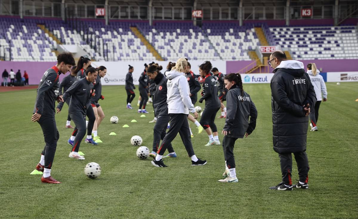 Teknik direktör Necla Güngör Kıragası yönetiminde karşılaşmanın oynanacağı Sinop Şehir Stadı'ndaki antrenmanda milli futbolcular pas ve taktik çalıştı.