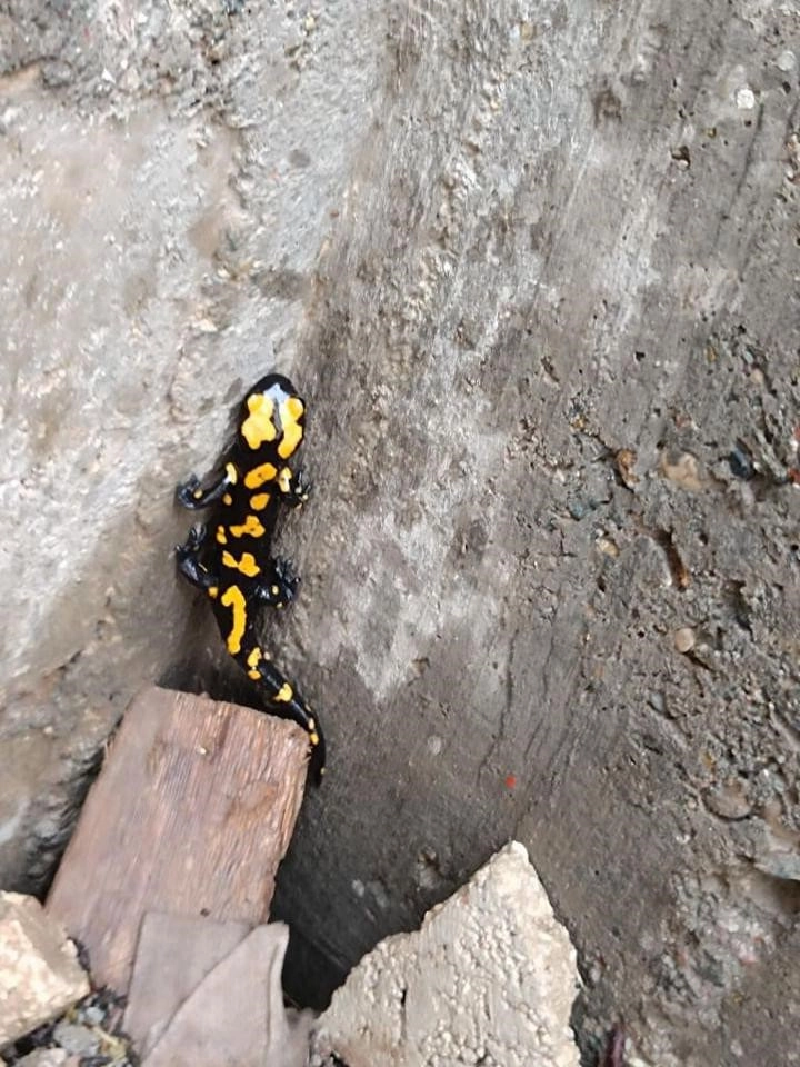 Kent merkezinde yapımı devam eden bir evde sarı benekli semenderi gören vatandaşlar semenderi, cep telefonuyla görüntüledi.
