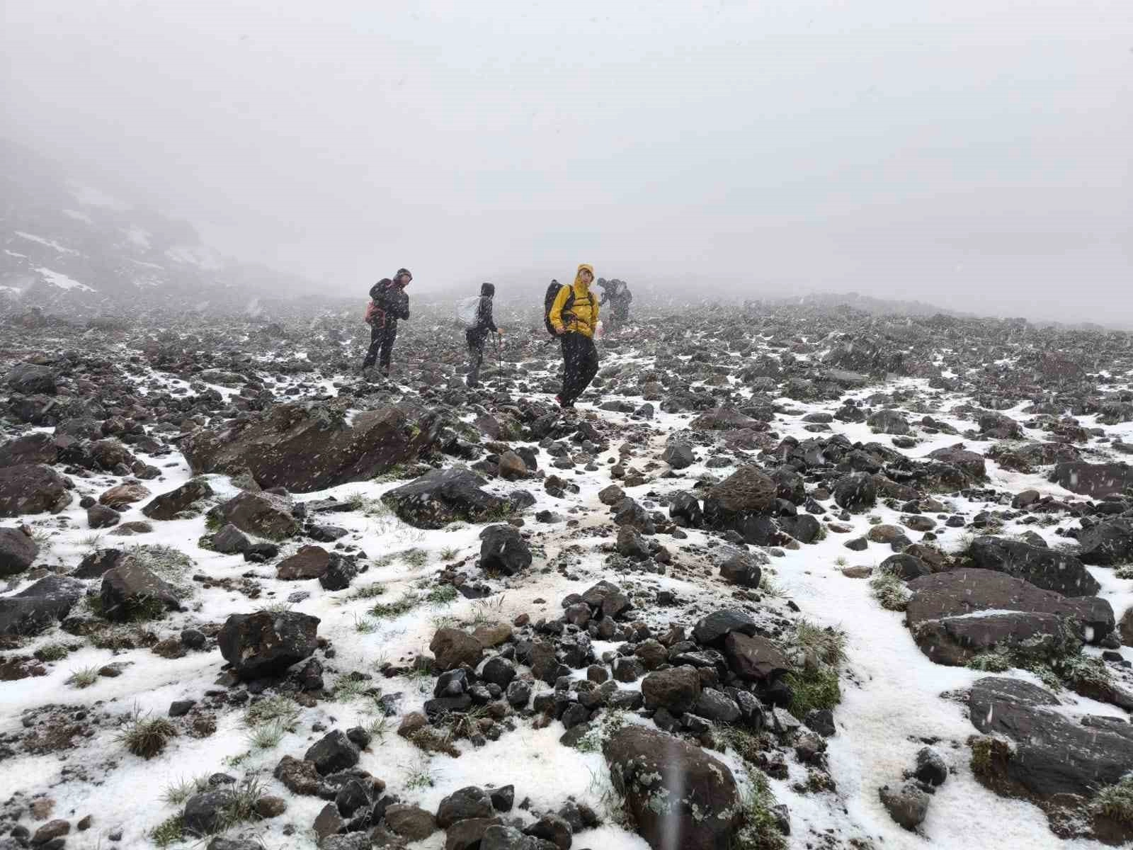Türkiye'nin en yüksek dağı olan Ağrı Dağı'na zirve tırmanışı yapan yerli ve yabancı dağcılar, yoğun kar yağışı nedeniyle 4 bin 200 metreden geri dönmek zorunda kaldı.