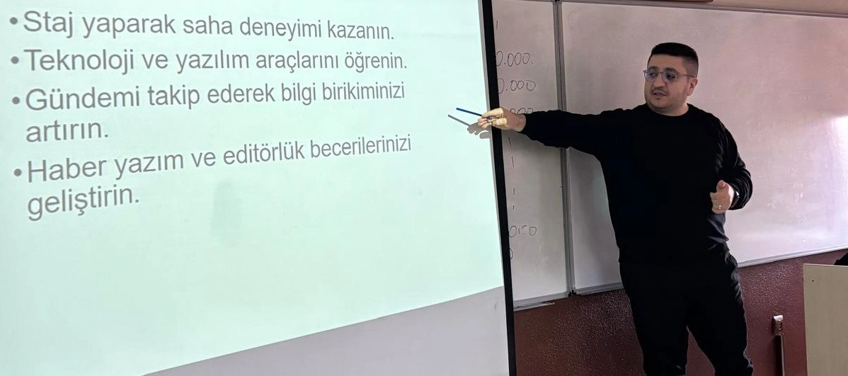 Zonguldak Meslek Yüksekokulu Görsel İşitsel Teknikler ve Medya Yapımcılığı Bölümü, İhlas Haber Ajansı Zonguldak İl Temsilcisi ve deneyimli muhabir Onur Altındağ'ı ağırladı. Öğrencilerin yoğun katılımıyla gerçekleşen söyleşide, ajans haberciliğinin temel prensipleri ve mesleğin sahadaki uygulamaları detaylı bir şekilde ele alındı.
