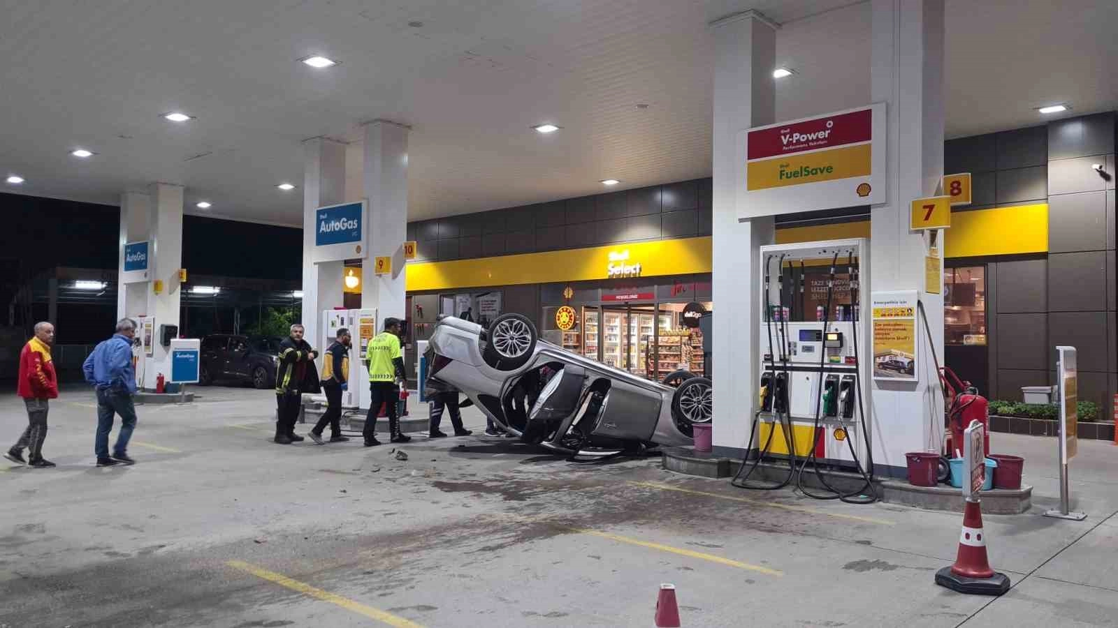 Kayseri'nin Melikgazi ilçesinde akaryakıt istasyonunda çarpışan otomobillerden biri takla attı. Takla atan otomobilin yakıt pompasına çarpmaması faciayı önledi.