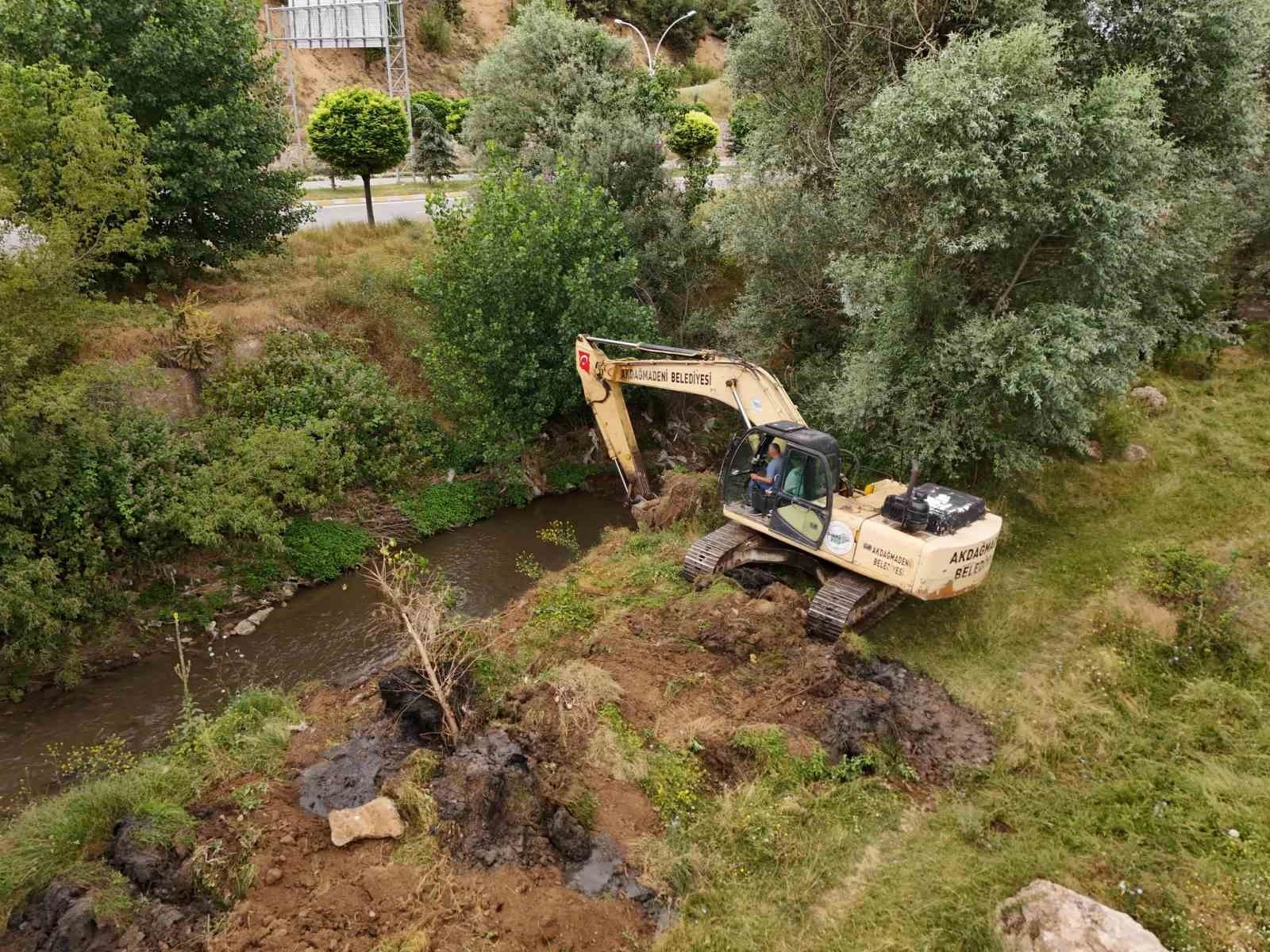 Yozgat'ın Akdağmadeni ilçesinde belediye tarafından, dere yataklarında temizlik çalışmaları devam ediyor.