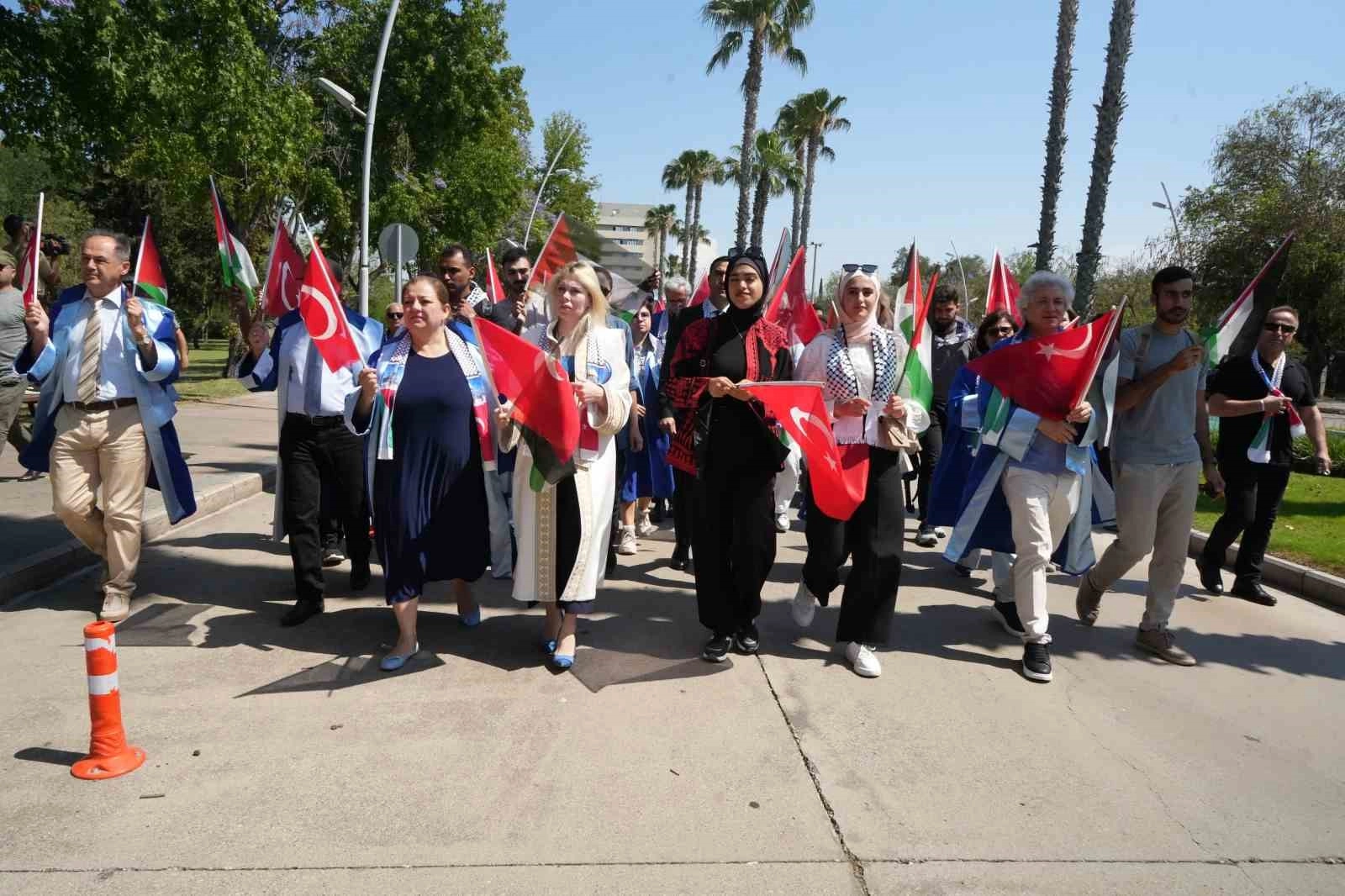 Prof. Dr. Özlenen Özkan, Akdeniz Üniversitesi Senatosu olarak, soykırıma dönüşen vahşeti şiddetle kınadıklarının ve Filistin halkının yanında olduklarının altını çizdi. Dünyanın dört bir yanında Filistin halkına destek için eylemlerde bulunan akademisyen ve öğrencilere dikkat çeken Özkan, "İsrail, uluslararası anlaşmaları ve hukuk kurallarını hiçe sayarak yürüttüğü bu eylemlerine derhal son vermelidir. Filistin'de katliamların durması için acilen ateşkes sağlanmalı ve kalıcı barış için iki devletli bir çözüm derhal hayata geçirilmelidir. Tüm vicdan sahiplerini bu kötülük karşısında sessiz kalmamaya ve seslerini yükseltmeye çağırıyoruz. Dünyanın her yerinde vicdan sahibi insanların Filistin'e destek yürüyüşleri ve eylemleri, insanlığa olan inancımızı diri tutuyor. Dünya kamuoyunda en büyük ve en ses getiren eylemlerin üniversitelerde gerçekleştiriliyor olmasını ise çok önemsiyoruz. Bilimin merkezi üniversitelerin böylesine önemli bir konuda sessiz kalmaması ve barış yanlısı gençlerin dünyanın geleceğine sahip çıkmadaki kararlı duruşları dünyaya ilham veriyor, bizlere ümit aşılıyor" dedi.