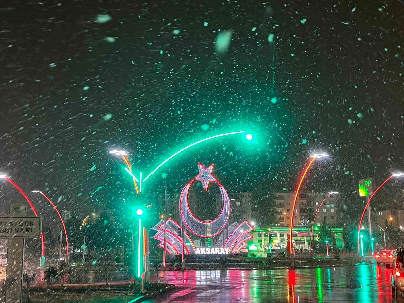 Aksaray'da dün gece yarısı başlayan yağmur gün boyu belirli aralıklarla etkili oldu. Gündüz soğuk havanın etkili olduğu Aksaray'da akşam saatlerinde başlayan yağmur, bir süre sonra yerini kar yağışına bıraktı. Hava sıcaklığının 1 dereceye kadar düştüğü şehir merkezinde kar yağışı belirli aralıklarla halen devam ederken, kar kentte kartpostallık görüntüler oluşturdu.