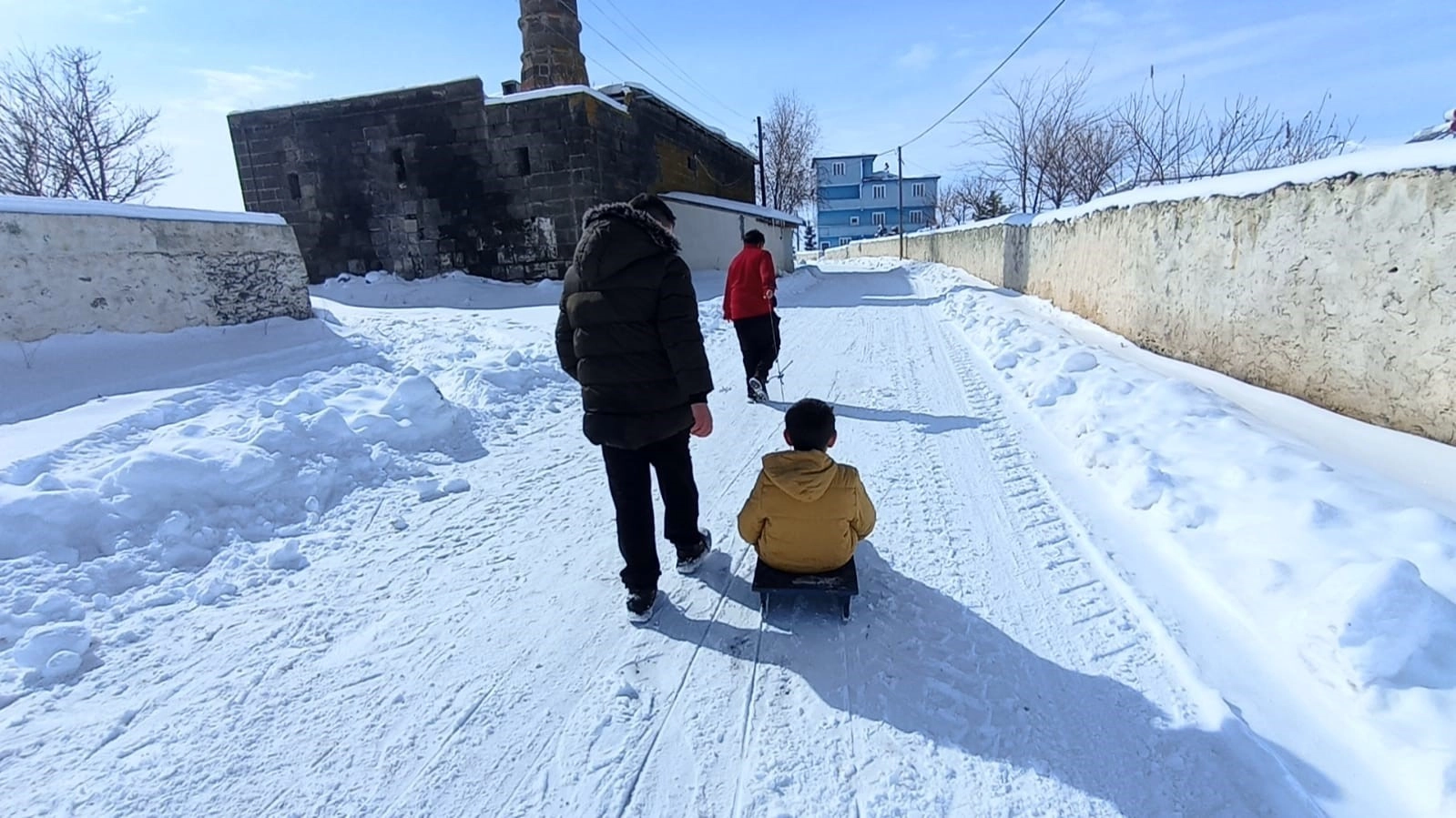 Akyaka'da kar yağışının ardından çocuklar sokaklara akın etti. Yoğun kar yağışının ardından beyaza bürünen ilçede, çocuklar kızaklarını alarak eğlenceli anlar yaşadı.