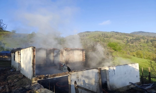 Samsun'un Alaçam ilçesinde çıkan yangında iki katlı betonarme ev kullanılmaz hale geldi.