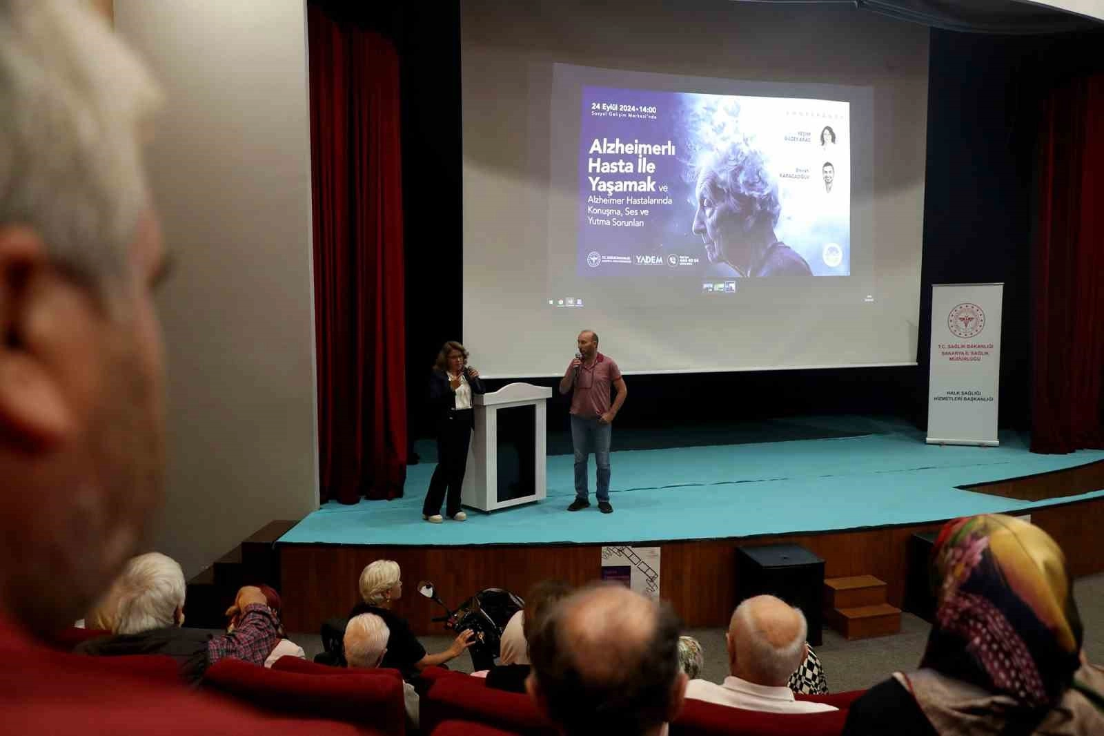 Sakarya Büyükşehir Belediyesi'nin Alzheimer hastalığına önemli bir farkındalık oluşturduğu "Azlehimer Hasta ile Yaşam" konferansında nöroloji uzmanı Doç. Dr. Güzey Aras ve konuşma terapisti Emrah Karacaoğlu, YADEM'in yaşlılarına teşhis sonrasında yapılacaklar ve hasta psikolojisiyle ilgili önemli aktarımlar yaptı.