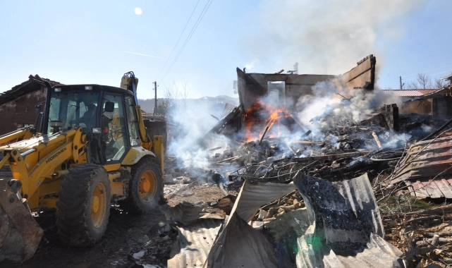 Yangında ev ve ahırda büyük çaplı hasar meydana geldi.