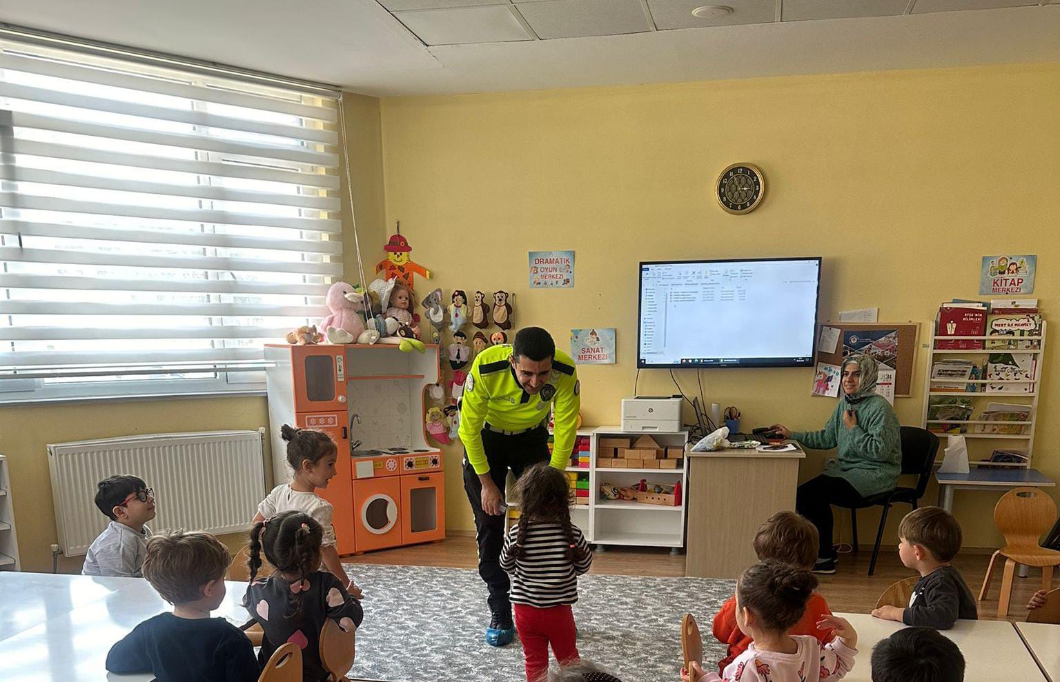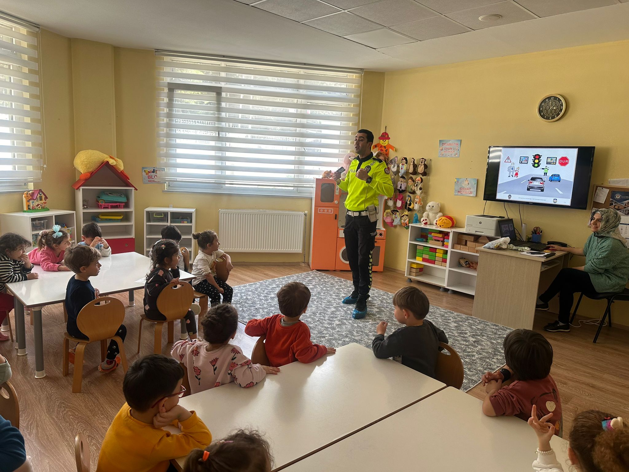 Sinop İl Emniyet Müdürlüğü, Trafik Tescil ve Denetleme Şube Müdürlüğü ekiplerince, Sinop Ada Anaokulu öğrencilerine yönelik, temel trafik bilgisi, trafik işaret ve levhaları, okul servis araçlarında güvenli seyahat için yapılması gerekenler, emniyet kemeri ve yaya geçidi kullanımının trafikteki önemi konularında bilgilendirme yapıldı.