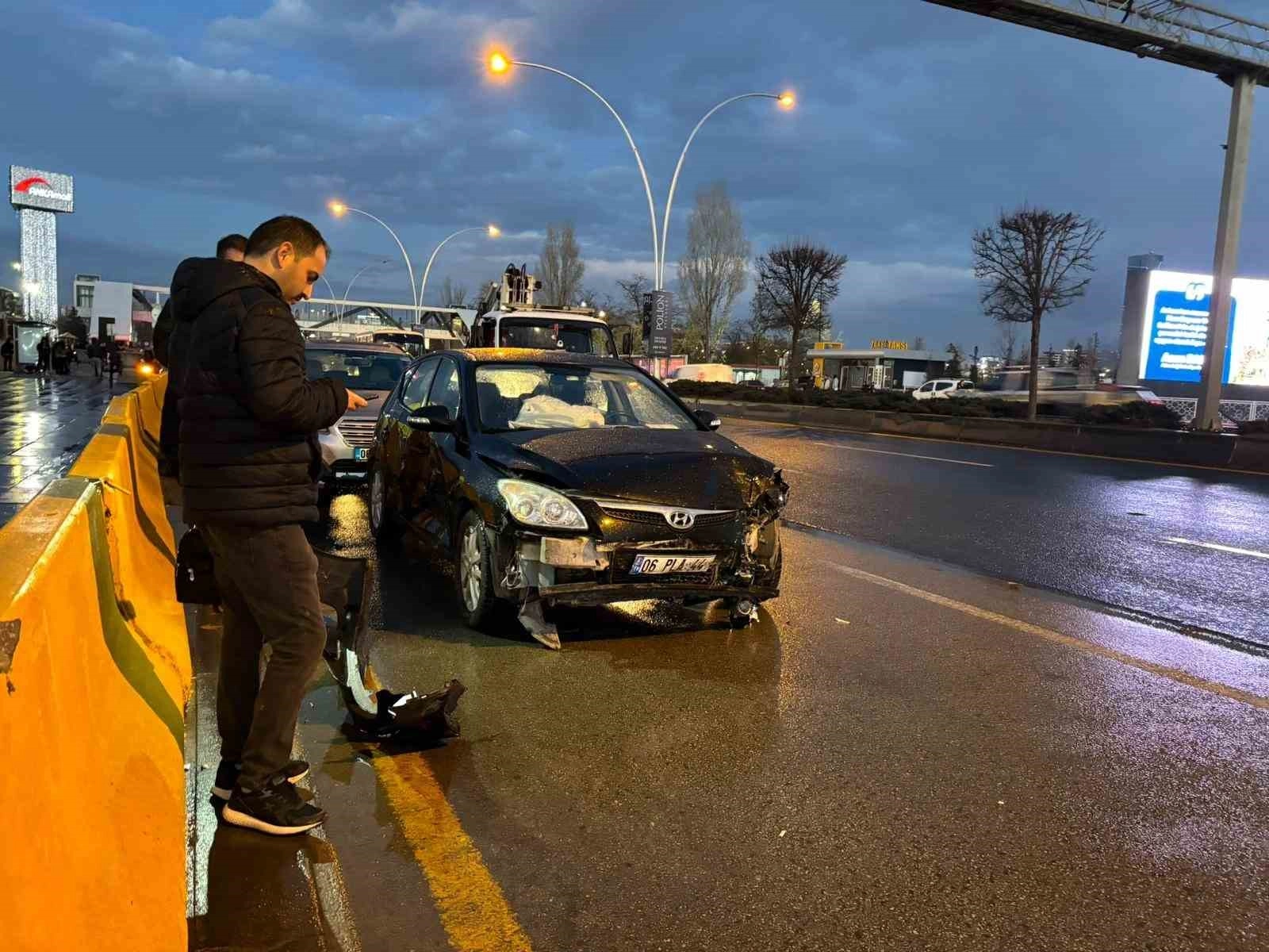 Ankara'da yağmur nedeniyle kayganlaşan yolda 26 aracın karıştığı zincirleme kazada 3 kişi yaralandı.