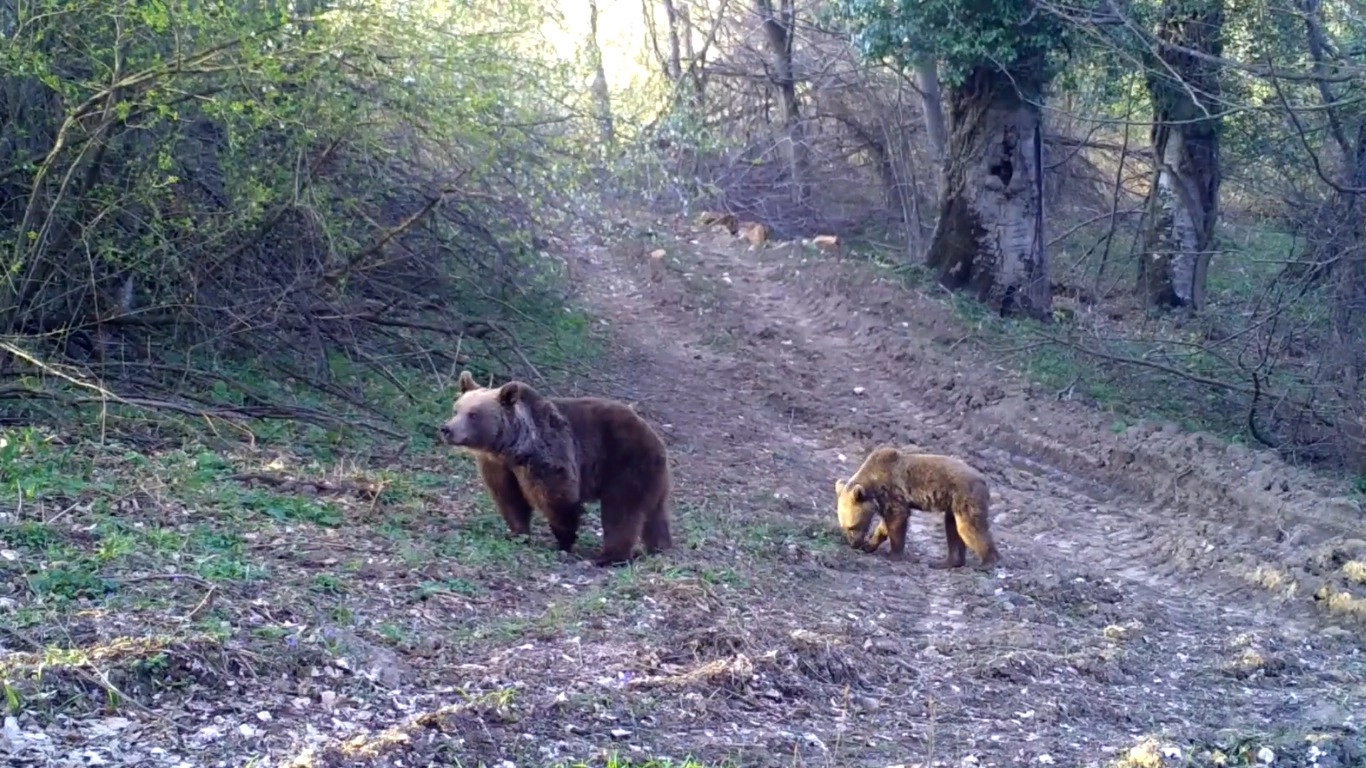 Anne ayı ve yavrusu, Doğa Koruma ve Milli Parklar (DKMP) Genel Müdürlüğünce doğaya yerleştirilen fotokapana takıldı.