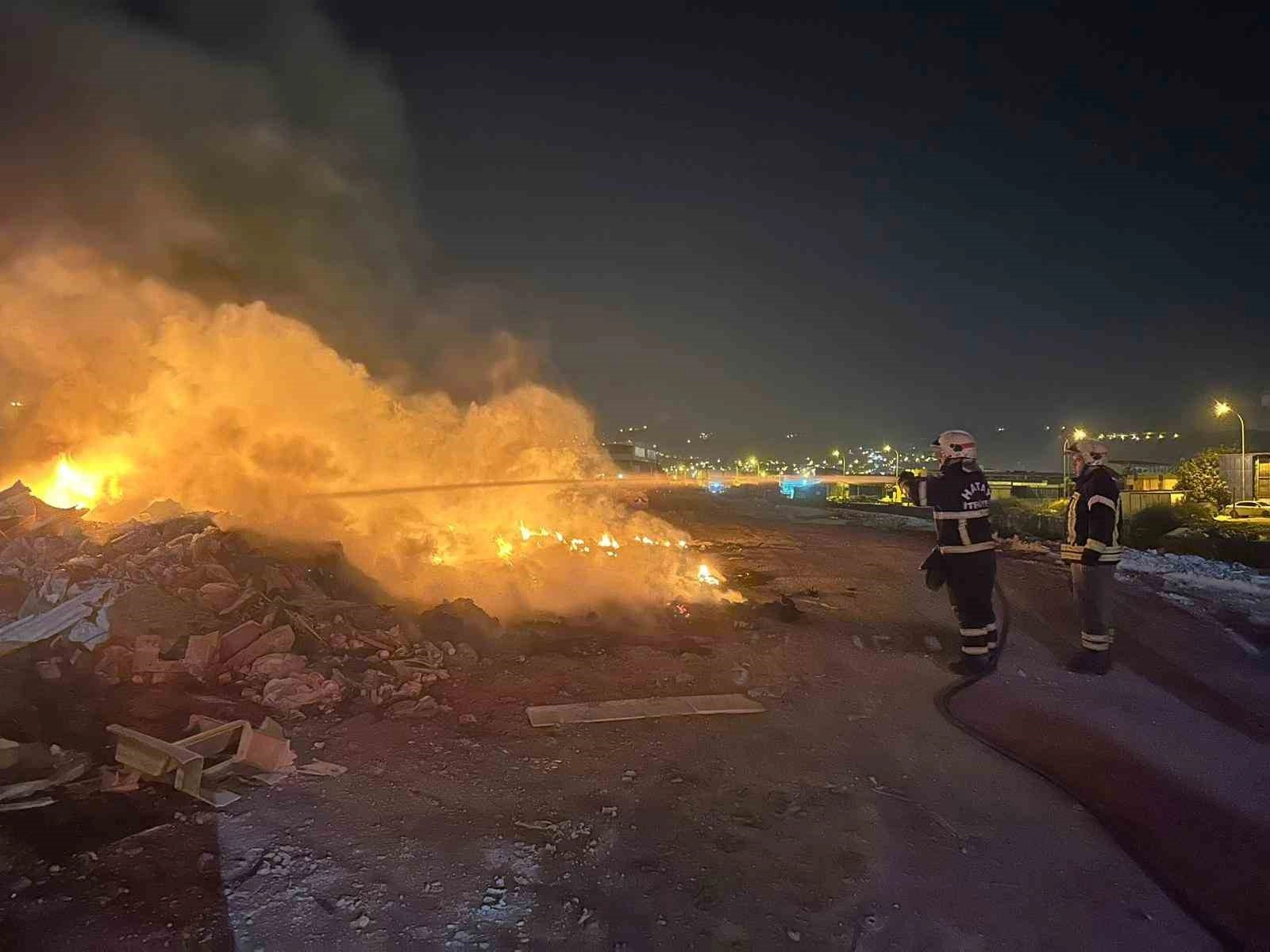 Hatay'ın Antakya ilçesinde atıl durumdaki eşyaların bulunduğu alanda çıkan yangın itfaiye ekiplerinin müdahalesiyle söndürüldü.