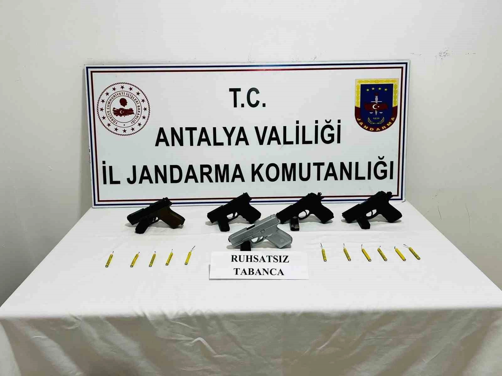 Antalya'da silah kaçakçılığı yaptığı tespit edilen 1 şüpheli, jandarma ekiplerince yakalandı. Üzerinde ve özel eşyalarında yapılan aramada 5 ruhsatsız tabanca il şarjörler ele geçirilen şüpheli, sevk edildiği mahkemece tutuklandı.