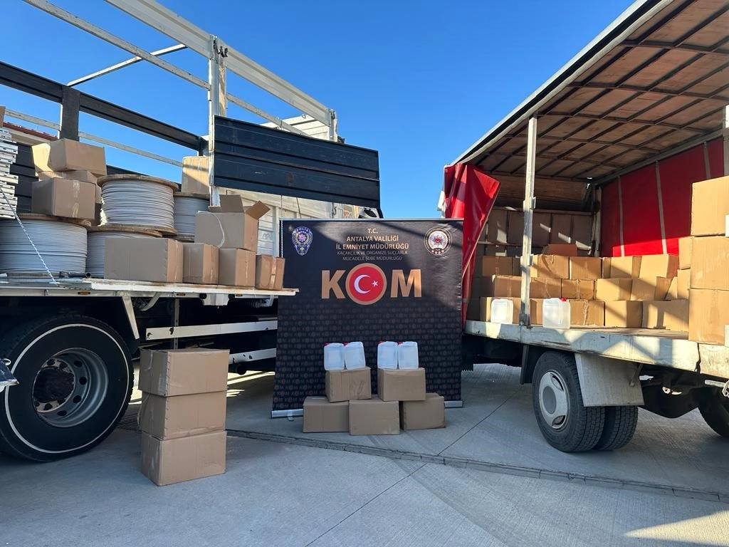 Antalya ve Alanya Cumhuriyet Başsavcılığı'nın talimatları doğrultusunda, İl Emniyet Müdürlüğü Kaçakçılık ve Organize Suçlarla Mücadele Şube Müdürlüğü ekipleri, yaklaşan yılbaşı öncesi denetimlerini sıklaştırdı. 23-27 Aralık 2023 tarihleri arasında Muratpaşa, Kepez ve Alanya ilçelerinde yapılan operasyonlarda; 145 bin 650 litre sahte alkol, 60 adet içki aroması, 200 adet alkol kiti, 7 bin 720 adet sigara sarma kağıdı, 165 adet puro, 400 adet cinsel içerikli ürün, 180 adet gıda takviyesi ele geçirildi. 15 kişiye "5607 Sayılı Kaçakçılıkla Mücadele Kanunu'na Muhalefet Etmek" suçundan adli işlem yapıldı.