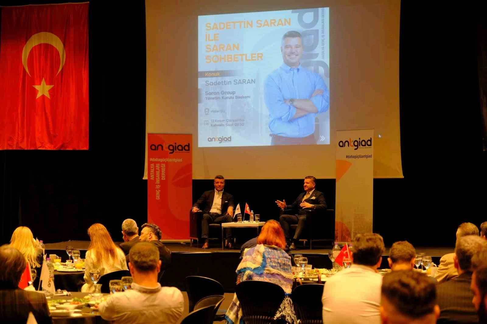 Antalya Genç İş İnsanları Derneği (ANTGİAD), Konyaaltı ilçesinde düzenlediği kahvaltılı etkinlikte iş dünyasının önde gelen isimlerinden Sadettin Saran'ı ağırladı. ANTGİAD Başkanı Ercan Yavaş'ın moderatörlüğünde gerçekleşen ve "Sadettin Saran ile Saran Sohbetler" başlığını taşıyan söyleşi, ANTGİAD üyelerinin yoğun katılımıyla gerçekleşti.