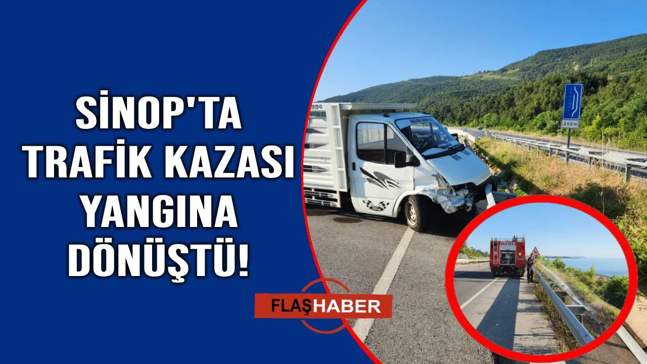 Sinop’un Gerze ilçesinde meydana gelen trafik kazasında, kontrolden çıkan araç bariyerlere çarptı. Kazanın ardından sıçrayan parçalar nedeniyle yol kenarındaki otluk alanda yangın çıktı.
