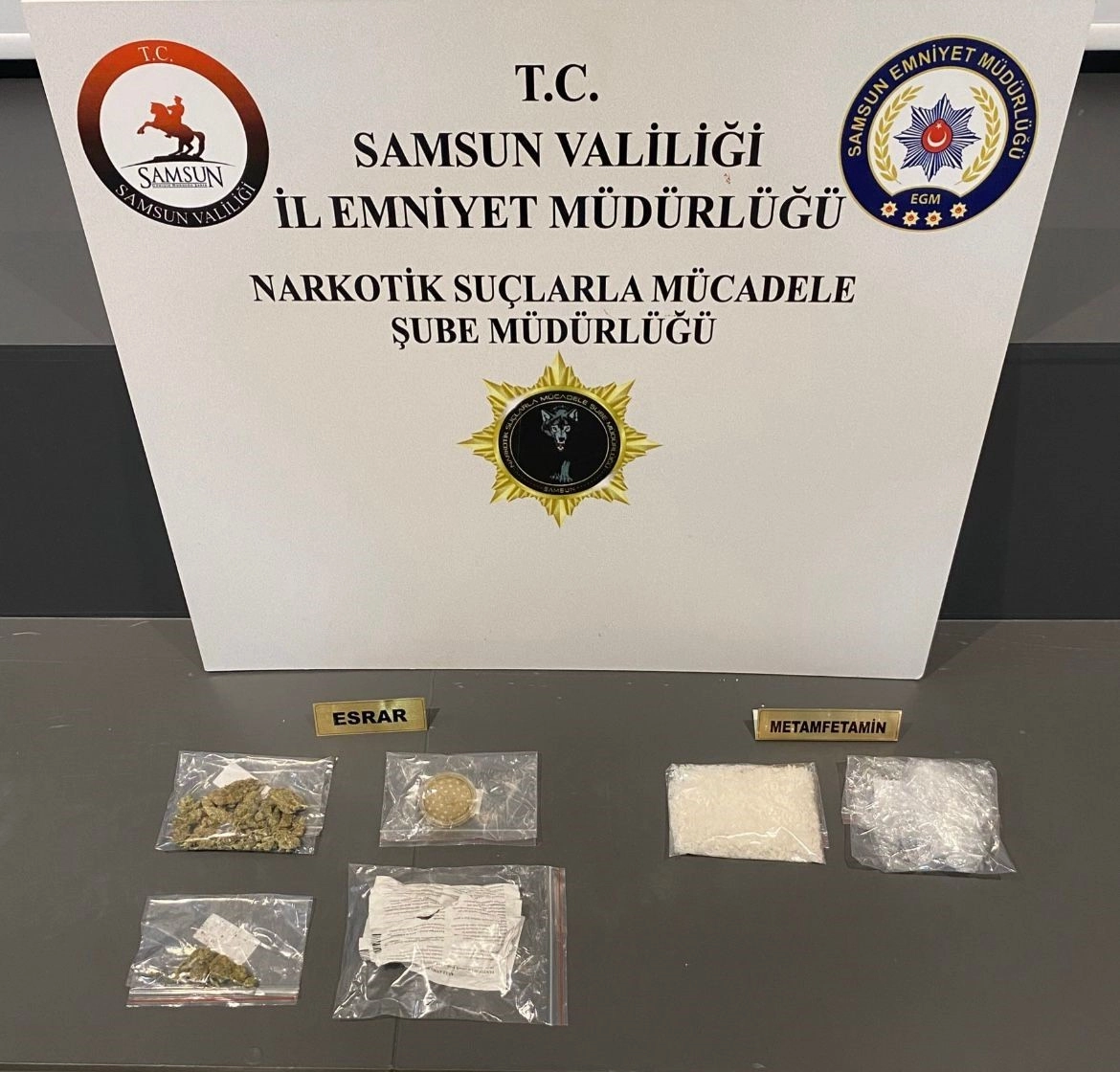 Olay, İlkadım ilçesi Derecik Mahallesi'nde meydana geldi. Edinilen bilgiye göre, Samsun Emniyet Müdürlüğü Narkotik Suçlarla Mücadele Şube Müdürlüğü ekipleri, takibe aldıkları bir araçta yaptıkları aramada, aracın tavan ile ön cam arasına zulalanmış paket içinde ve araçta bulunan çantada 99,03 gram metamfetamin, 23,09 gram skunk, 1 adet esrarlı sigara, 1 adet grinder (esrar öğütücüsü) ele geçirildi. Olayla ilgili 2 kişi gözaltına alındı.