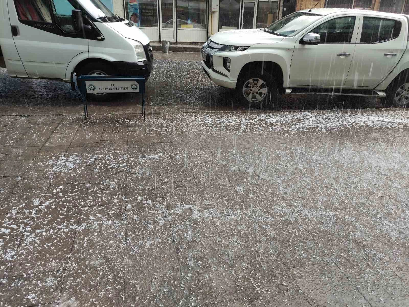 Ardahan'da etkili olan sağanak ve dolu, kenti beyaza bürüdü.