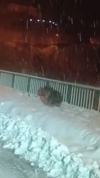 Orta Mahalle ile Yeni Mahalle arasındaki çevre yolunda iş makinesiyle kar küreme çalışması yapan Özgen Uçar, kaldırımda yürüyen ayıları fark etti. Aracın sesinden ürken yavru ayılardan ikisi bariyerlerden atlayarak hızla gözden kaybolurken, diğer iki ayı bir süre kaldırımda koştuktan sonra bariyerlerden atlayarak gecenin karanlığında ortadan kayboldu.