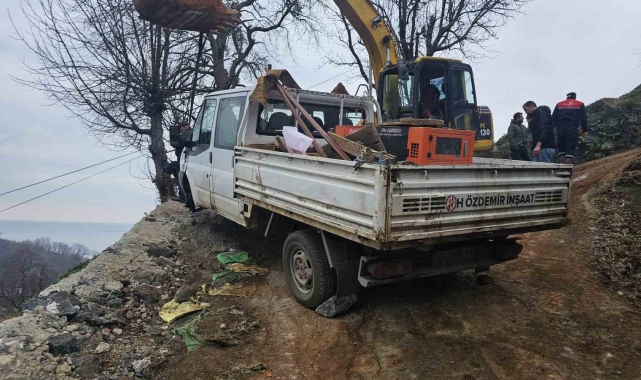 İlçeye bağlı Hacılar Mahallesi'nde doğal gaz hattı çalışması yapan işçilerin bulunduğu kamyonet, aşırı yağış sonucu kayganlaşan yolda mahsur kaldı. Yağmurla birlikte çamurlaşan yolda mahsur kalan kamyoneti kurtarmak için yine aynı şirkete ait bir ekskavatör bölgeye gönderildi. Ancak kaygan yol nedeniyle ekskavatör de kontrolünün kaybedilmesi sonucu kamyonete çarptı. Kısa süreli paniğe neden olan olayda kamyonet sürücüsü yaralandı. Olay yerine gelen sağlık ekipleri, yaralıyı hastaneye sevk etti. Kamyonet ve ekskavatör, çekici yardımıyla kurtarıldı. Yaşananlar ise güvenlik kamerasınca saniye saniye kaydedildi.