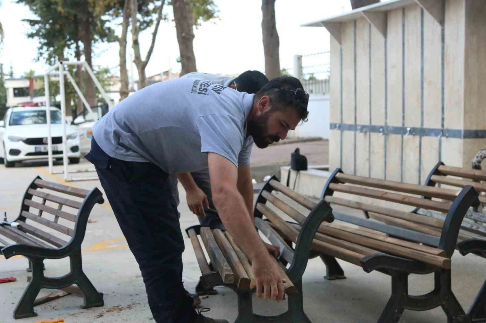Belediyenin Makine İkmal ve Onarım Müdürlüğü ekipleri, Atakum sınırları içerisindeki okullarda, ihtiyaç doğrultusunda hummalı çalışma yürüttüler. Okul bahçelerinde yer alan bankları ve masaların yıpranmış kısımlarını yenileyen ekipler, zımpara işlemiyle ahşap zeminleri pürüzsüz hale getirdi. Oturma alanlarını ve bahçe donanımlarını özenle onaran ekipler, ardından boyama işlemi gerçekleştirdi.