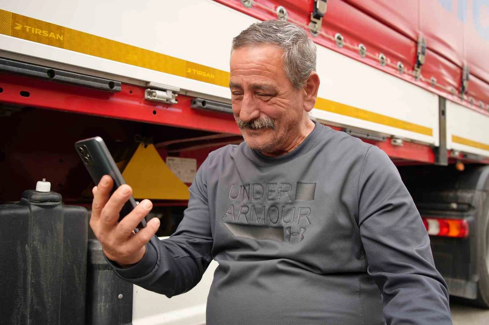 Bayramı yollarda karşılayan tır sürücüleri, aileleri ve sevdiklerinin bayramını telefondan görüntülü arama yaparak kutladı.