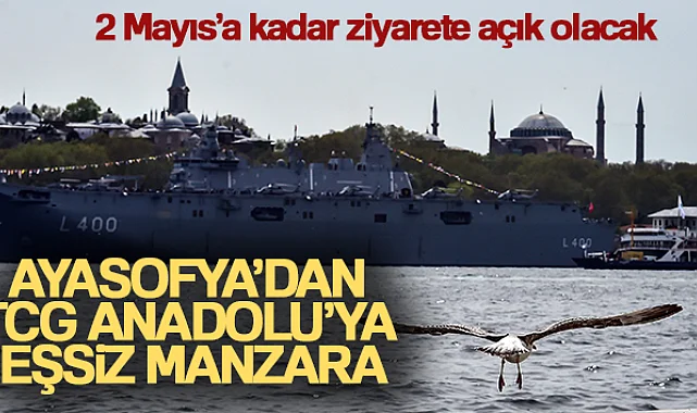 Ayasofya Camii’nden TCG Anadolu gemisine eşsiz manzara görenleri mest etmeye devam ediyor. Gemi vatandaşların yoğun ilgisi nedeniyle İstanbul’da, yeniden aynı manzaraya demirledi.