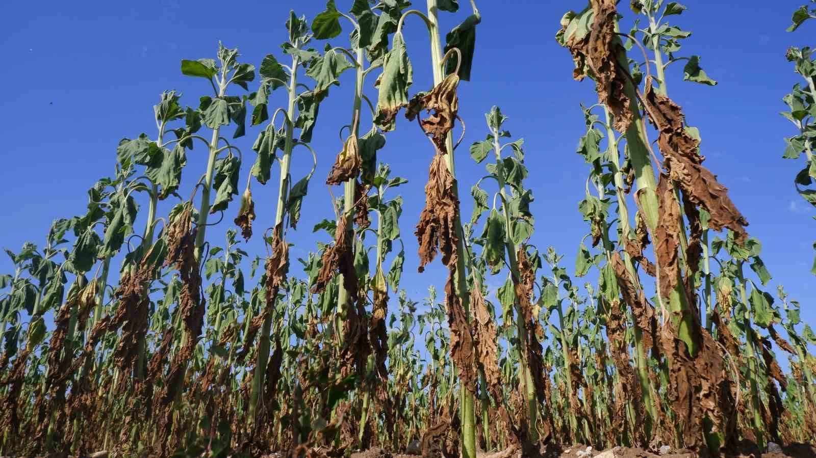 Trakya'nın sarı gelini olarak bilinen ayçiçeğinin kafa ve dane oluşumunun tamamlanmadığı tarlalar bu kez sarı renge değil, kurumuş ve çürümüş ayçiçeği saplarına büründü. Ayçiçeğinin adeta can çekiştiği tarlalardaki yarıklar, kuraklığı gözler önüne serdi.