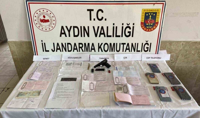Aydın İl Jandarma Komutanlığı JASAT Timleri ve Nazilli İlçe Jandarma Komutanlığınca Nazilli Cumhuriyet Başsavcılığının koordinesinde eşzamanlı operasyon gerçekleştirildi. Geçtiğimiz 20 Şubat 2024 tarihinde başlatılan planlı çalışma kapsamında tefecilik suçunu işlediği tespit edilen 6 şüpheli takibe alındı. Yaklaşık 4 aylık çalışmanın ardından ekipler, S.U., D.U., M.U., Ö.U., F.U. ve İ.T. isimli şüphelilerin Nazilli'de bulunan adreslerinde 10 Haziran 2024 günü eş zamanlı operasyon gerçekleştirdi. 2 ikamet, 1 işyeri ve 4 araçta yapılan aramada 1 adet tabanca ile 5 adet fişek, 1 adet 50 sayfalık boş senet koçanı, 10 adet boş senet, 8 adet farklı tutarlarda senet, 2 adet çek, 5 adet imzalı boş sözleşme kağıdı, 5 adet tapu ve suça ilişkin muhtelif evrak ele geçirildi.