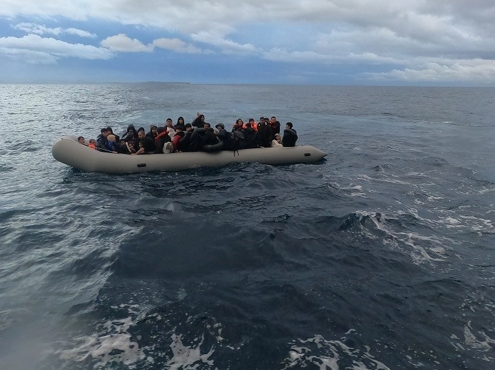 Edinilen bilgiye göre, Balıkesir'in Ayvalık ilçesinde görevli Sahil Güvenlik Mobil Radarı (MORAD-12) tarafından lastik bot içerisinde bir grup düzensiz göçmen olduğunun tespit edildi. Bunun üzerine görevlendirilen Sahil Güvenlik Botu (TCSG-8) tarafından hareketli lastik bot durduruldu ve içerisindeki 25'i çocuk 56 düzensiz göçmen yakalandı.