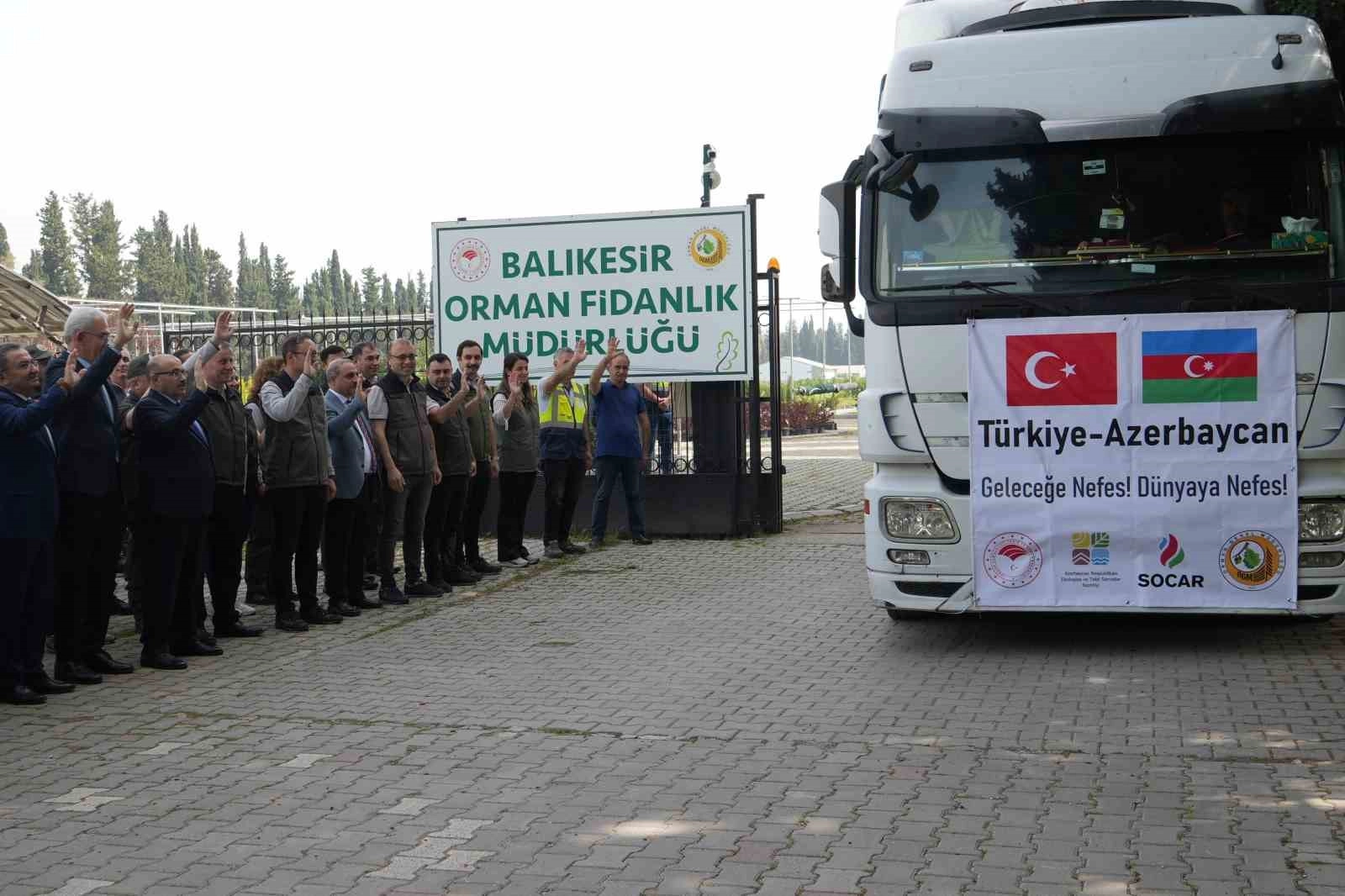Tıra yüklenen 12 bin 500 adet fidan tören sonrasında Azerbaycan'a uğurlandı.