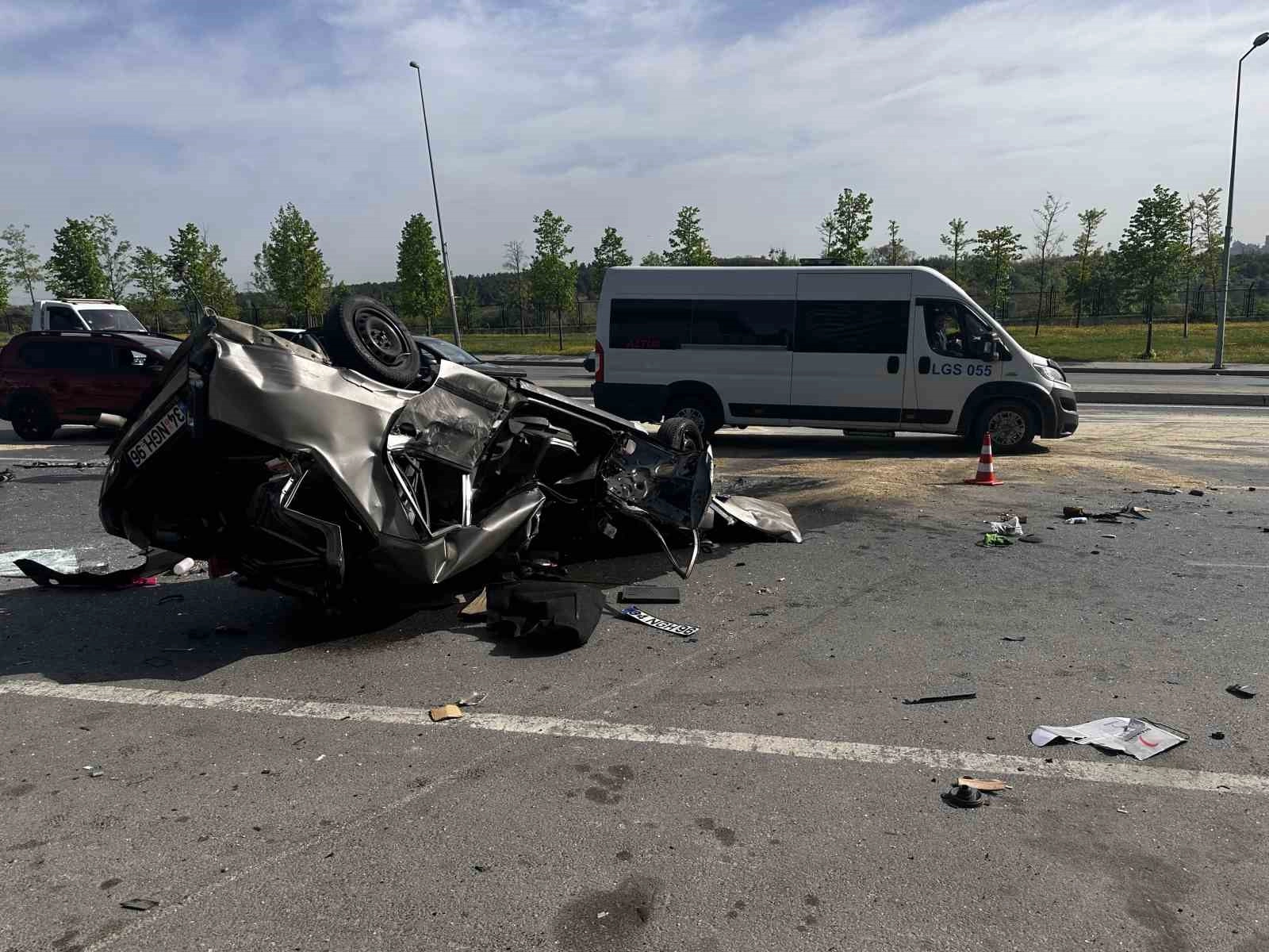 önce orta refüje çarptı, ardından da takla atarak karşı şeride geçti. Adeta uçarak karşı şeritteki 4 araca çarpan otomobilde bulunan 3 kişi, yola fırladı. Olay yerine sağlık ekipleri, polis ve itfaiye ekipleri sevk edildi. Yaralanan 3 kişi, sağlık ekiplerinin ilk müdahalesinin ardından hastaneye kaldırıldı. Araçların çekici ile yoldan çekilmesinin ardından trafik normale dönerken polis ekipleri kazaya ilişkin çalışma başlattı.