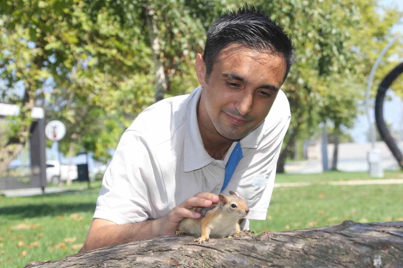 Ordu'da bir şahsın bahçesinde yaralı olarak bularak tedavi ettiği yavru sincap, en yakın arkadaş oldu.
