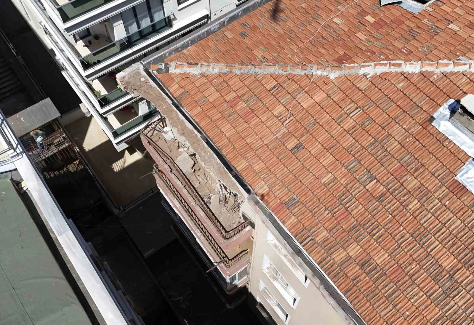 Bahçelievler'de çatısında çökme yaşanan bina havadan görüntülendi.