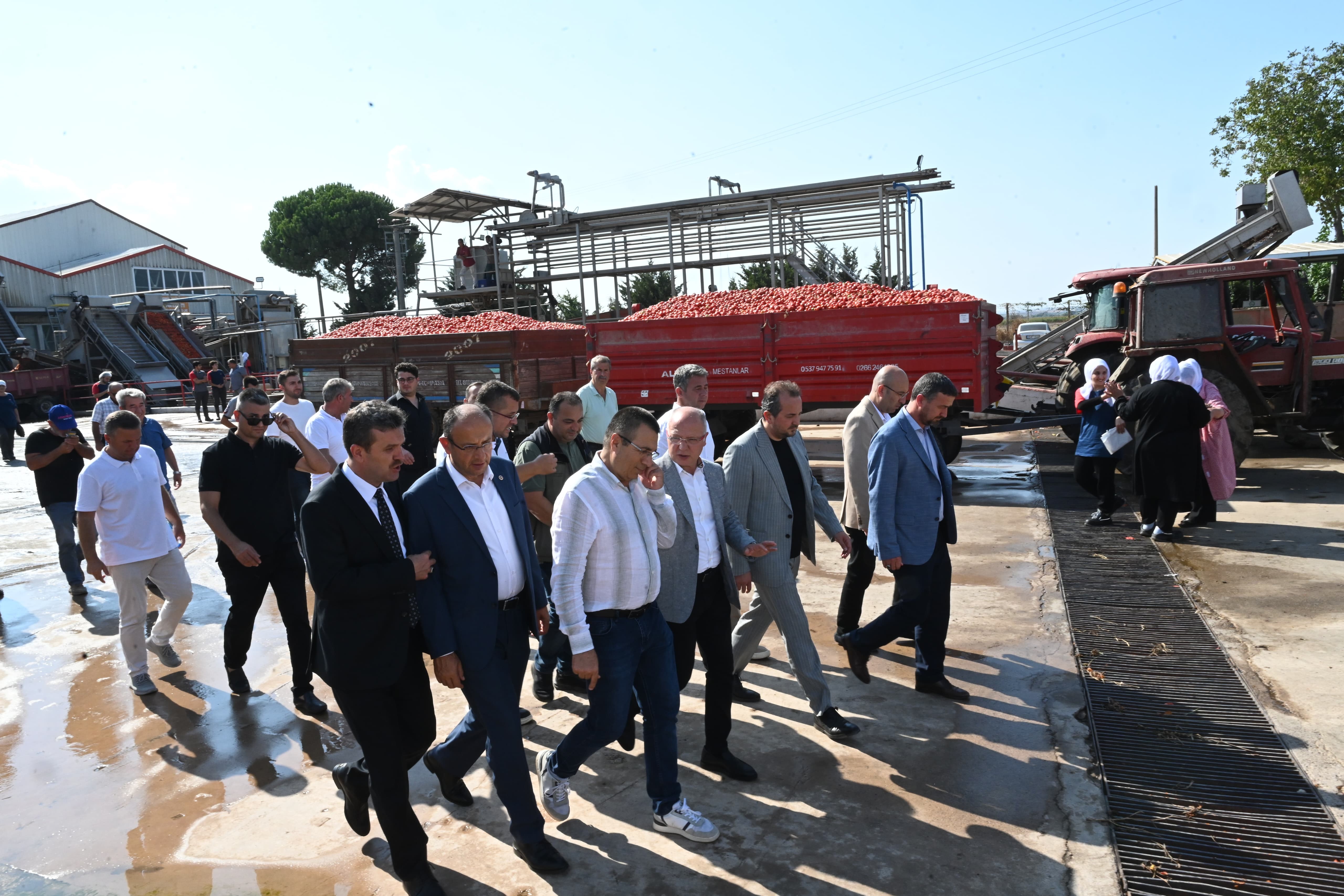 Ticaret Bakanlığı'nın desteğinin hem sahada üretim yapan, alım yapan ve ulusal manada da bu işin ihracatını yapan fabrikalara ciddi bir moral motivasyon olduğunu kaydeden Davut Gürkan, " Bugün de bu dolaşmış olduğumuz tesis neredeyse bu ovada yetişmiş olan 1 milyon 500 bin ton üretimin neredeyse 400 bin ton civarında alımını yapıyor. Çok şükür onları da yerlerinde gördük. Her gün neredeyse 4 bin tondan aşağı olmamak üzere 5 bin ton civarında alım yapıyorlar. Çiftçimizi de bu konularda rahatlatmaya çalışıyorlar. Fabrikalar Ticaret Bakanlığımızın vermiş olduğu destekler doğrultusunda alımlarla ilgili destek verirlerse önümüzdeki sürecin her iki tarafın memnuniyet içerisinde düzeltilebileceğini düşünüyorum. İnşallah bu berekete ticari kazançlarında da olmasını bekliyorum. Bugün itibariyle Ticaret Bakanlığı'nın, Tarım ve Orman Bakanlığı'yla beraber istişareleri sonucu almış olduğu bir karar doğrultusunda belirlenmiş fiyat üzerinde alım yapan üreticilere özel bir destek verilecek. Bu desteğin de üreticilerimize büyük manada bir katkı sağlayacak ve bu hem rekolte fazlası dediğimiz hem de son dönemdeki üretimin ciddi manada fayda sağlayacağını üreticilerine de güzel bir katkı sağlayacak. Hem bu konuda üretim yapan özellikle de ihracat yapan fabrikalarımız daha güçlü daha kuvvetli bir alım yapacaklar. İnşallah üreticilerimizin mahsulleri yerde kalmayıp Ticaret Bakanlığı'nın yapmış olduğu bu desteğin ciddi katkı sağlayacağını düşünüyorum" şeklinde konuştu.