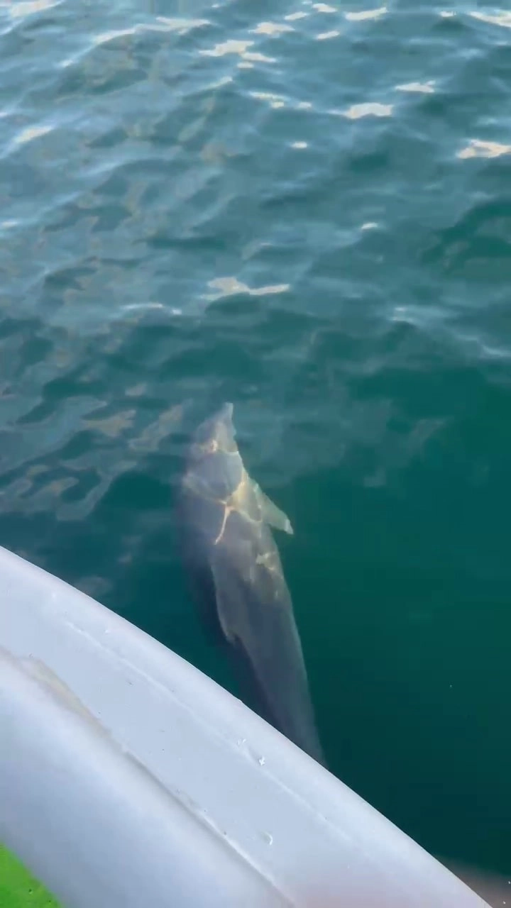 Karasu'dan Karadeniz'e açılan balıkçılar, kendisine eşlik eden bir yunusu fark etti. Yaklaşık 20 dakika boyunca tekneyle aynı yöne doğru yüzen yunusun dans gösterisi kendisine hayran bıraktı. O anları cep telefonuyla kayıt altına alan balıkçı görüntüleri sosyal medya hesabında paylaştı. Görüntüde, yunusun teknenin önünde yüzerken yaptığı hareketler yer alıyor.