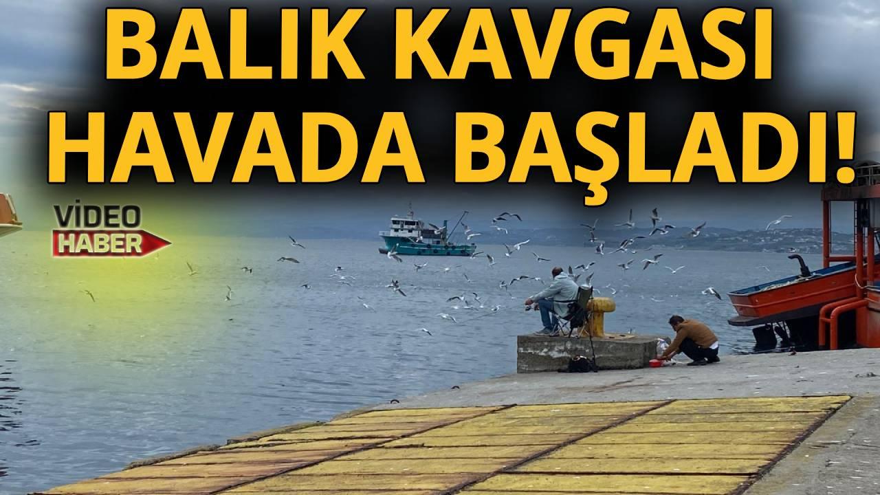 Teknelerden denize atılan balık ve atıklar, çok sayıda martının kıyıya akın etmesine neden oldu. Balıkçıların hemen yanında toplanan martılar, yiyecek kapma telaşıyla havada ve su üzerinde kıyasıya mücadele verdi.