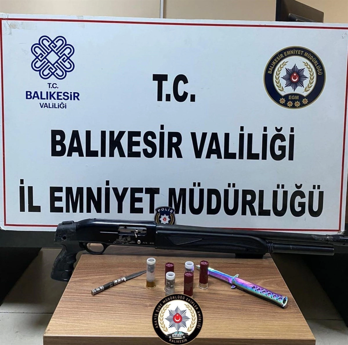 Balıkesir İl Emniyet Müdürlüğü Asayiş Şube ekipleri Balıkesir'in merkez ilçeleri olan Altıeylül ve Karesi ilçelerinde geçtiğimiz gün şüpheli şahıslar ve araçlara yönelik denetim gerçekleştirdi. Yapılan denetimde; bir şahıstan bir ruhsatsız tabanca ve 58 adet fişek, bir şahıstan bir kurusıkı tabanca, 2 şahıstan 2 pompalı tüfek ve 13 adet kartuş, bir şahıstan 12 Sentetik ecza malzemesi, bir şahıstan 2,70 gram metamfetamin maddesi, bir şahıstan 1,15 gram esrar maddesi ele geçirildi. Bin 822 şahıs sorgusunda ise 8 aranan şahıs yakalandı.